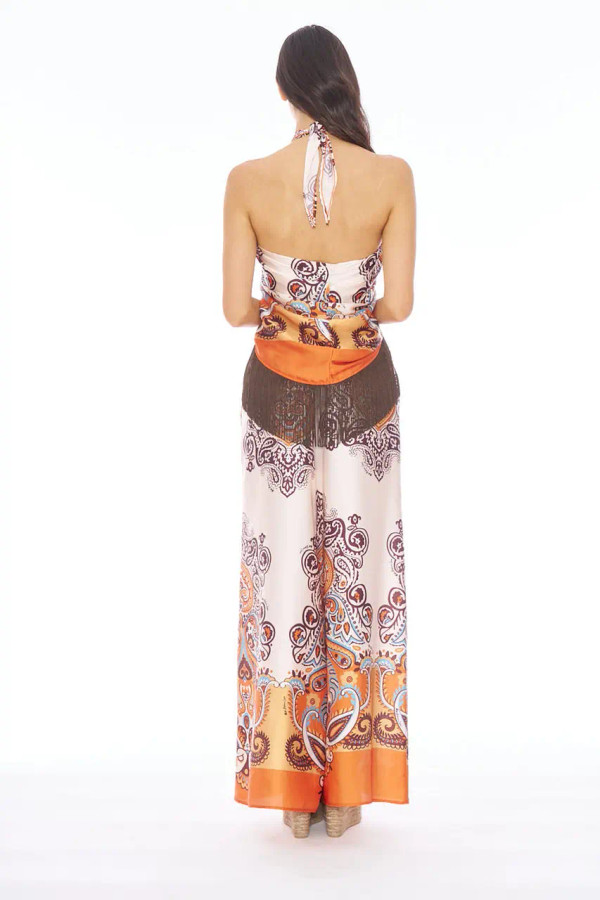 Available in India Brown, with warm tones of orange and brown, the triangle top with removable padded cups is decorated with sparkling rhinestones on the top and briefs. The Brazilian briefs with adjustable laces enhance the silhouette with elegance and comfort.