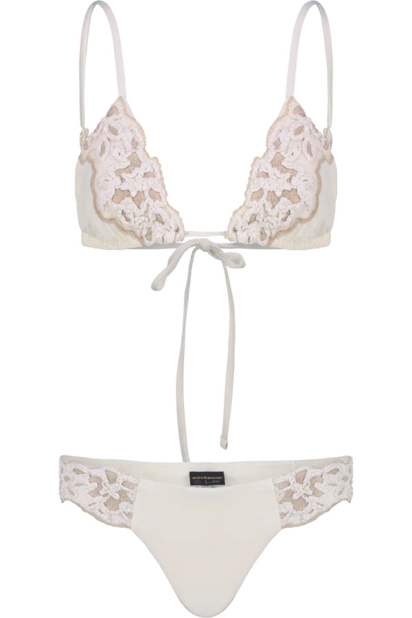 The Lace Embroidered Triangle Bikini with Culotte is the expression of contemporary craftsmanship and "authentic luxury" of the Miss Bikini Luxe SS26 collection. This model combines the brand's signature couture attitude with the irresistible bohemian spirit.