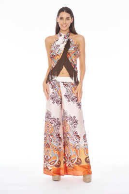 Realizzato in raso brillante, avvolge la silhouette con un fascino ricercato e si completa con frange raffinate che donano movimento e un’allure bohémien. Perfetto come copricostume per la spiaggia o in piscina, può trasformarsi in un top elegante abbinato ai Pantaloni in Raso Cruise, per look sofisticati nelle serate estive.